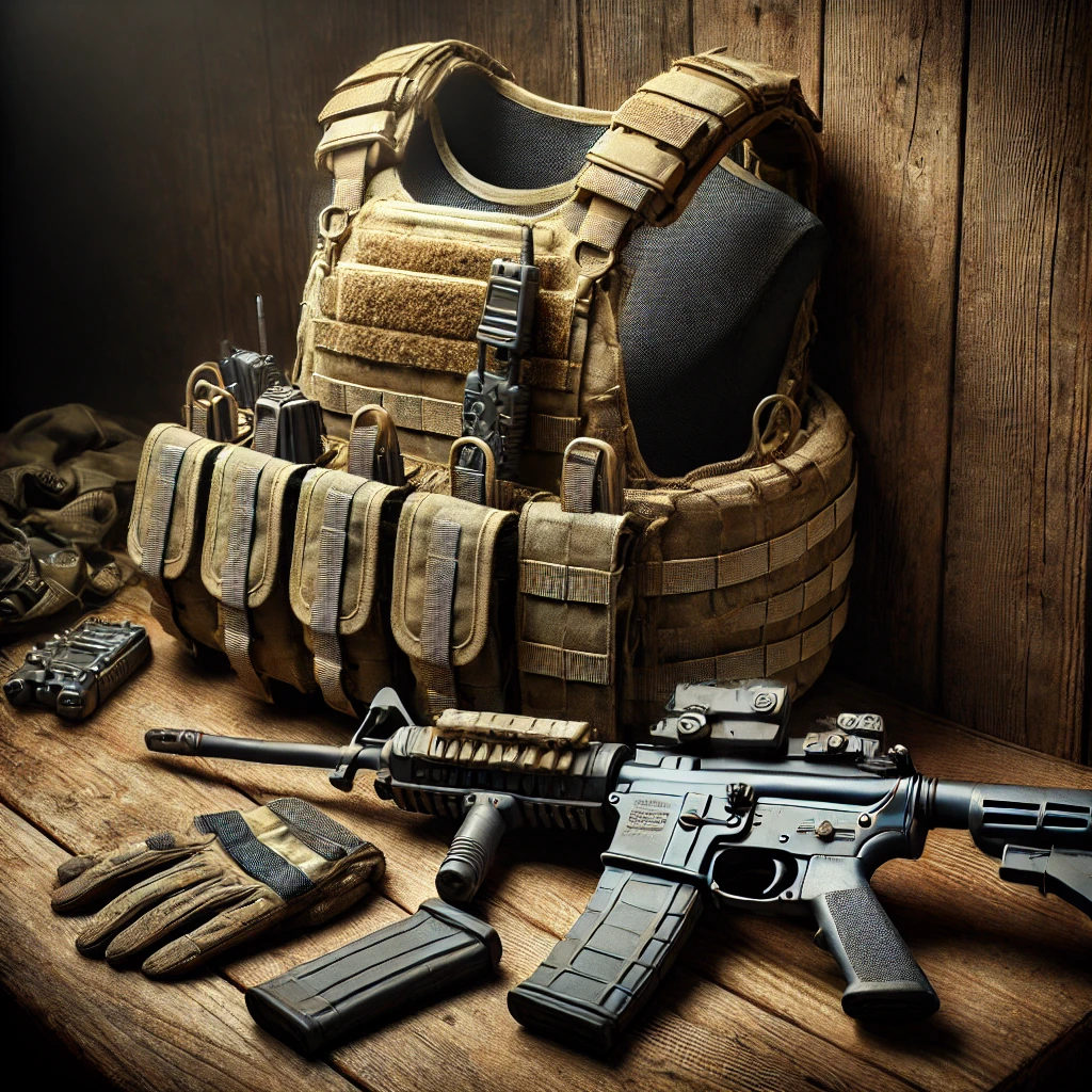 プレートキャリアやチェストリグを基盤としてユーティリティポーチ・ラジオポーチ・ハイドレーションパックなど各種ポーチ類を装備します。